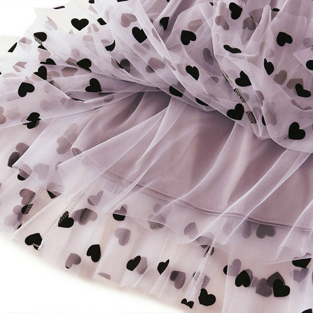 Flutter into fun with this adorable heart-print skirt. Made from light and airy polyester mesh, this khaki A-line maxi skirt is adorned with whimsical black hearts, creating a look that's perfect for a first date, a weekend brunch, or a casual day out. The elastic waistband provides a comfortable fit, so you can look great and feel even better. This tutu is a one size product.