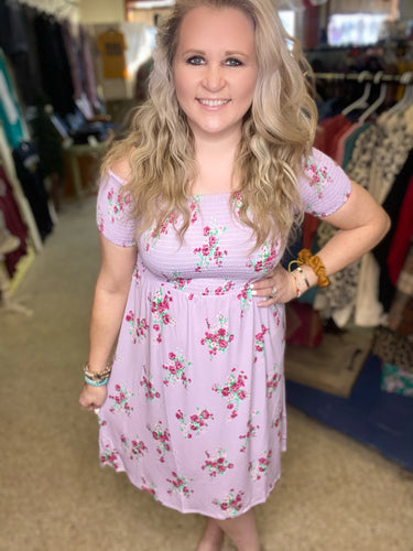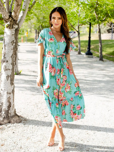 Tickled Teal - Floral Pattern Tie Waist Whitney Dress