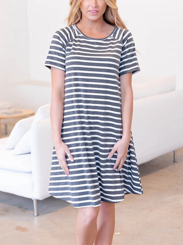 Tickled Teal - Dot Pattern Pocket Tee Dress Blue
