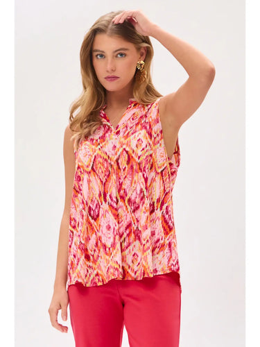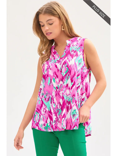 Dear Scarlett - Abstract Print Split Neckline Sleeveless- Hot Pink