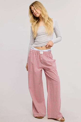 Mimosa - Mid-Low Rise Elasticized Waistband Gingham Pattern Pants