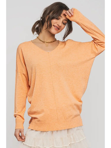 Orange V-Neck Tunic Sweater by Urban Daisy